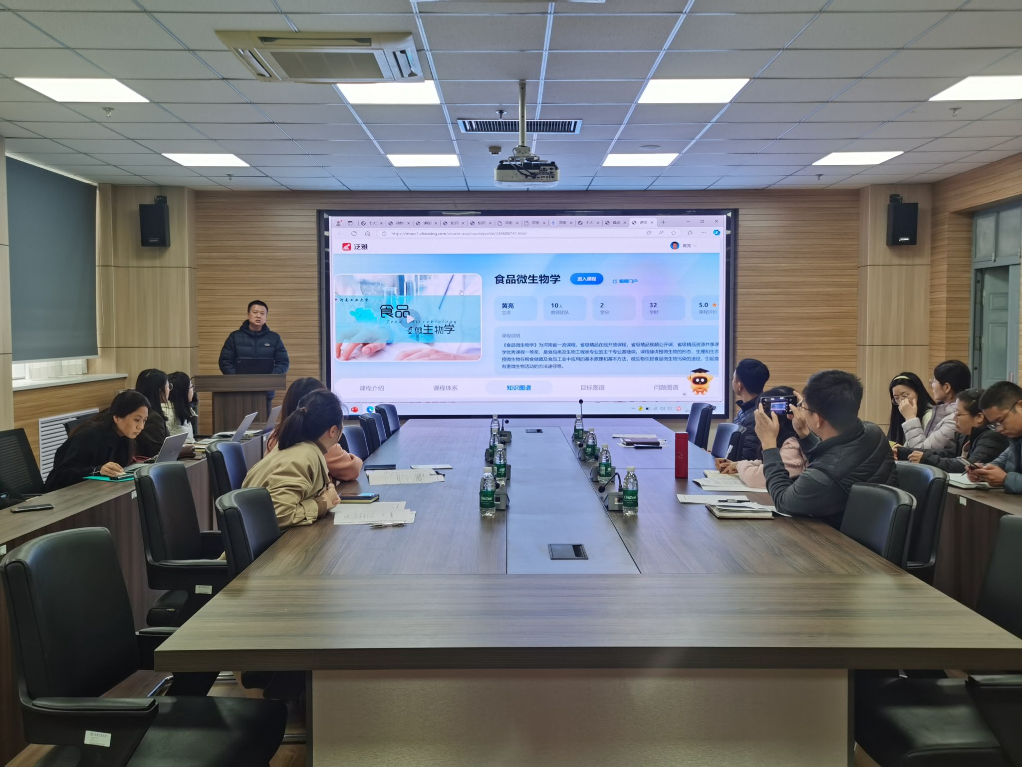 崔柳青首先传达了学校关于开展2024年校级智慧课程立项建设申报工作的通知要求,并介绍了我院智慧课程建设立项申报情况以及评审规则。随后的汇报环节,智慧课程建设申报负责人详细介绍了各项智慧课程建设的进展情况,并从知识图谱构建、问题图谱构建、框架设计优化和课程资源关联等方面进行了课程建设展示。最后评审专家对我院智慧课程的建设给予了充分肯定,认为智慧课程体系建设,对加快我院教育数字化转型进程,助力学院教育教学高质量发展具有重要作用。