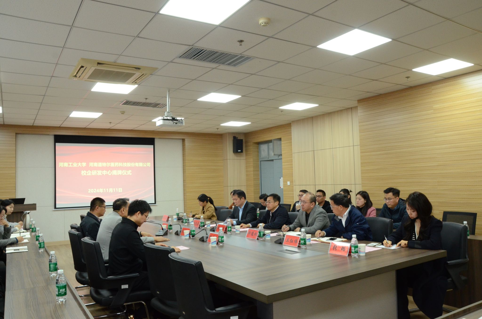 为深入推进校企合作、产教融合,进一步推进科技创新和人才培养,11月11日上午,学校与河南道特尔医药科技股份有限公司在惟德楼1313会议室举行校企研发中心揭牌仪式。河南道特尔医药科技股份有限公司董事长闫永生、首席研究员戎伟、研究室主任张来忠,麻豆tv