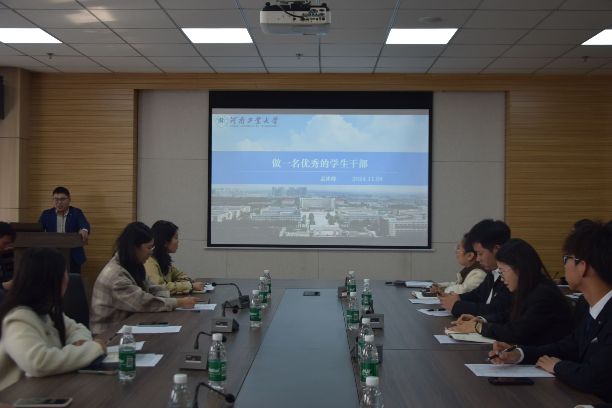 孟建峰以《做一名优秀的学生干部》为题进行开班第一讲,他从“学生干部内涵”、“学生干部的责任”、“做一名优秀的学生干部”三个方面全面阐述做好一名优秀学生干部的内在要求,希望大家进一步坚定理想信念、树立远大理想、苦练自身本领、永葆奋斗精神、肩负时代重任,争做素质过硬的青年学生干部队伍。