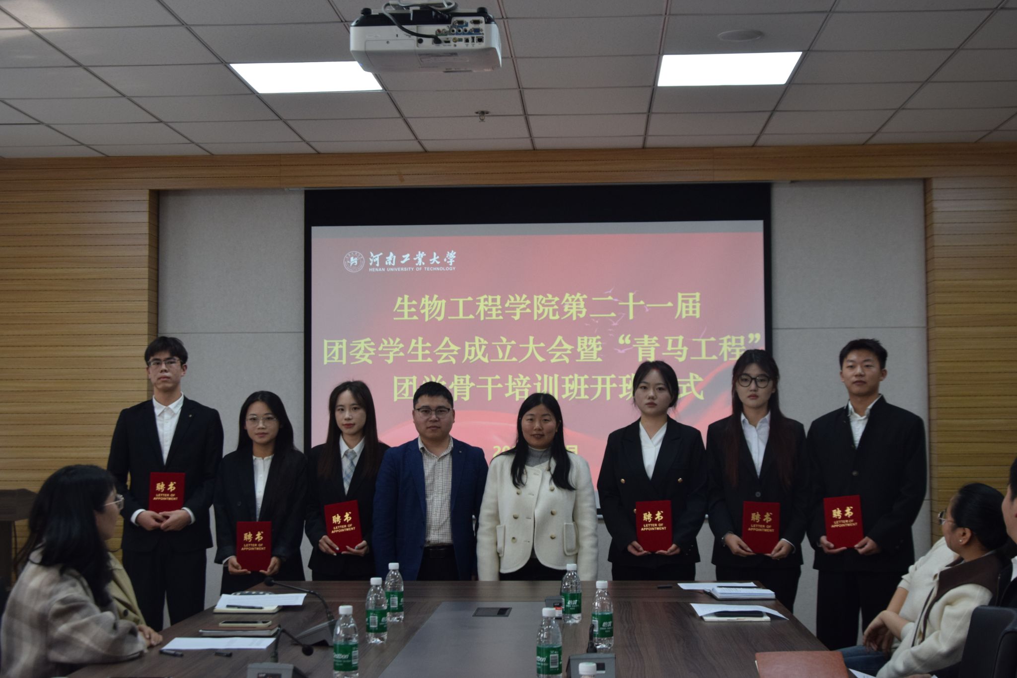 第二十一届团委学生会任命决定》,与会老师为团委、学生会骨干成员颁发了聘书。