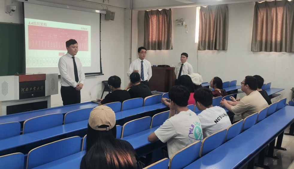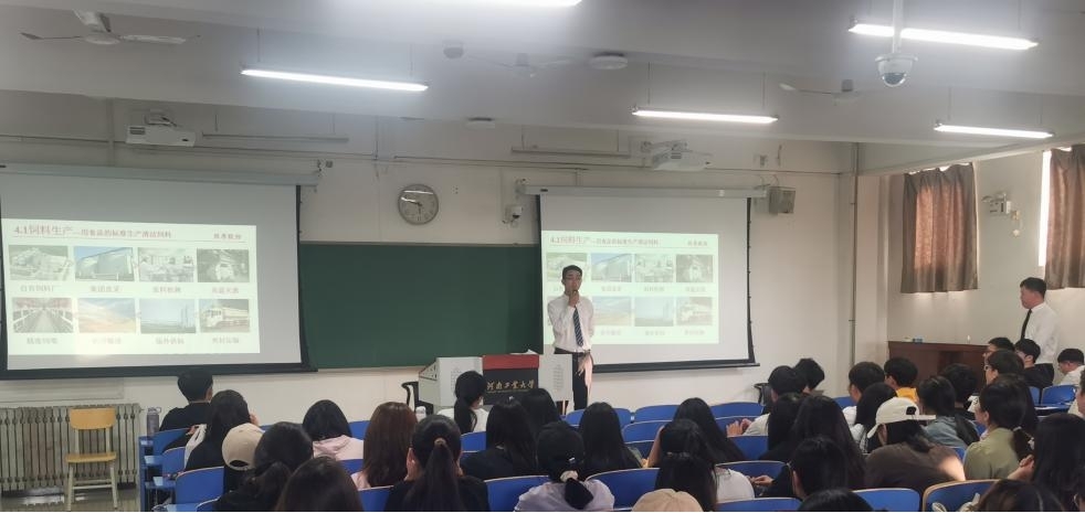 随后,由牧原饲料事业部负责人田经理,为同学们介绍了饲料加工各工段任务和职责,重点阐述了牧原集团特色的生产工艺和技术。