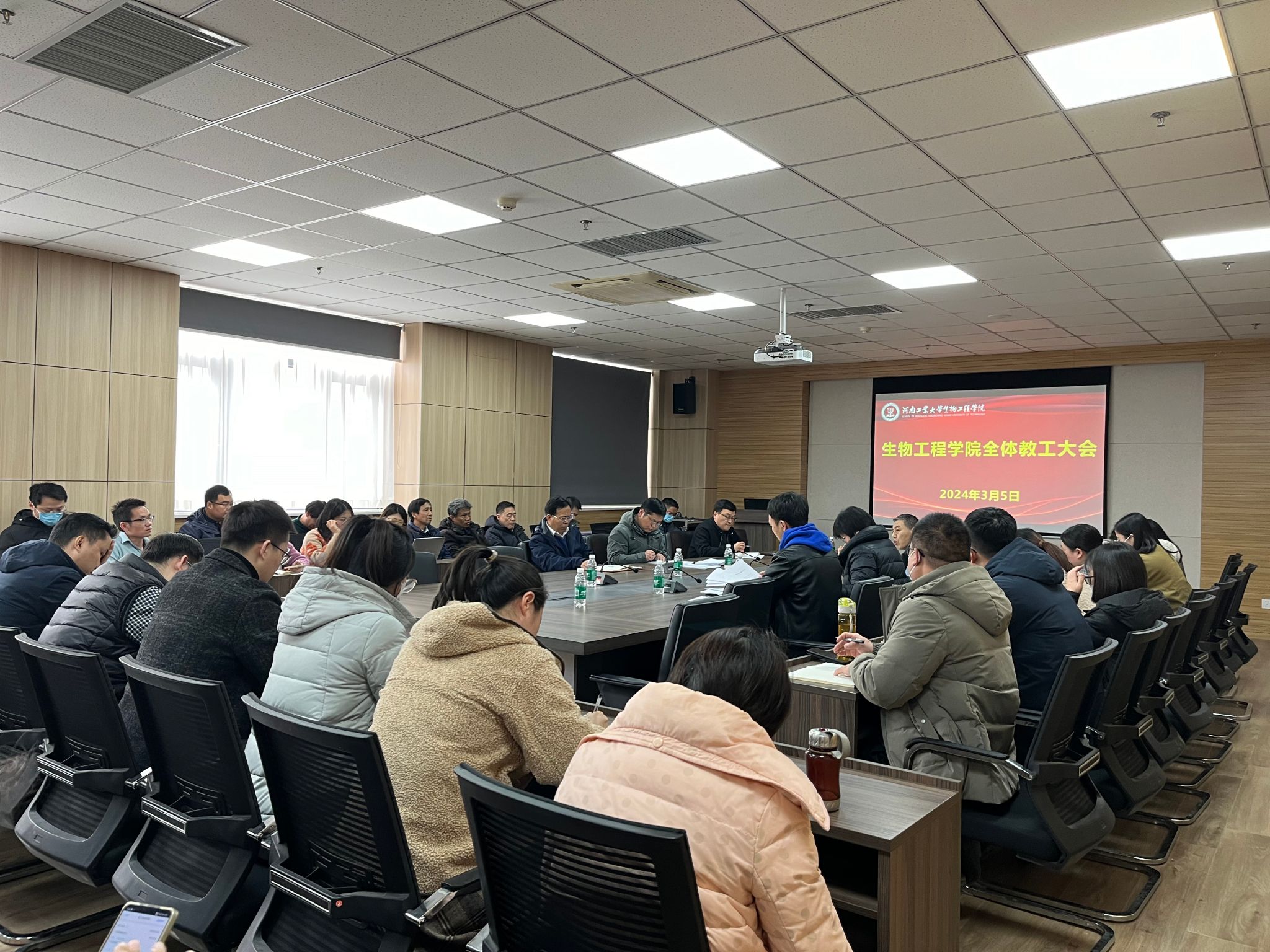 在惟德楼1313会议室召开全院教职工大会,学习学校2024年春季学期全体处级干部会议精神,安排部署新学期各项工作。学院领导班子成员及全体教职工参加了会议。会议由院党委书记卫红伟主持。