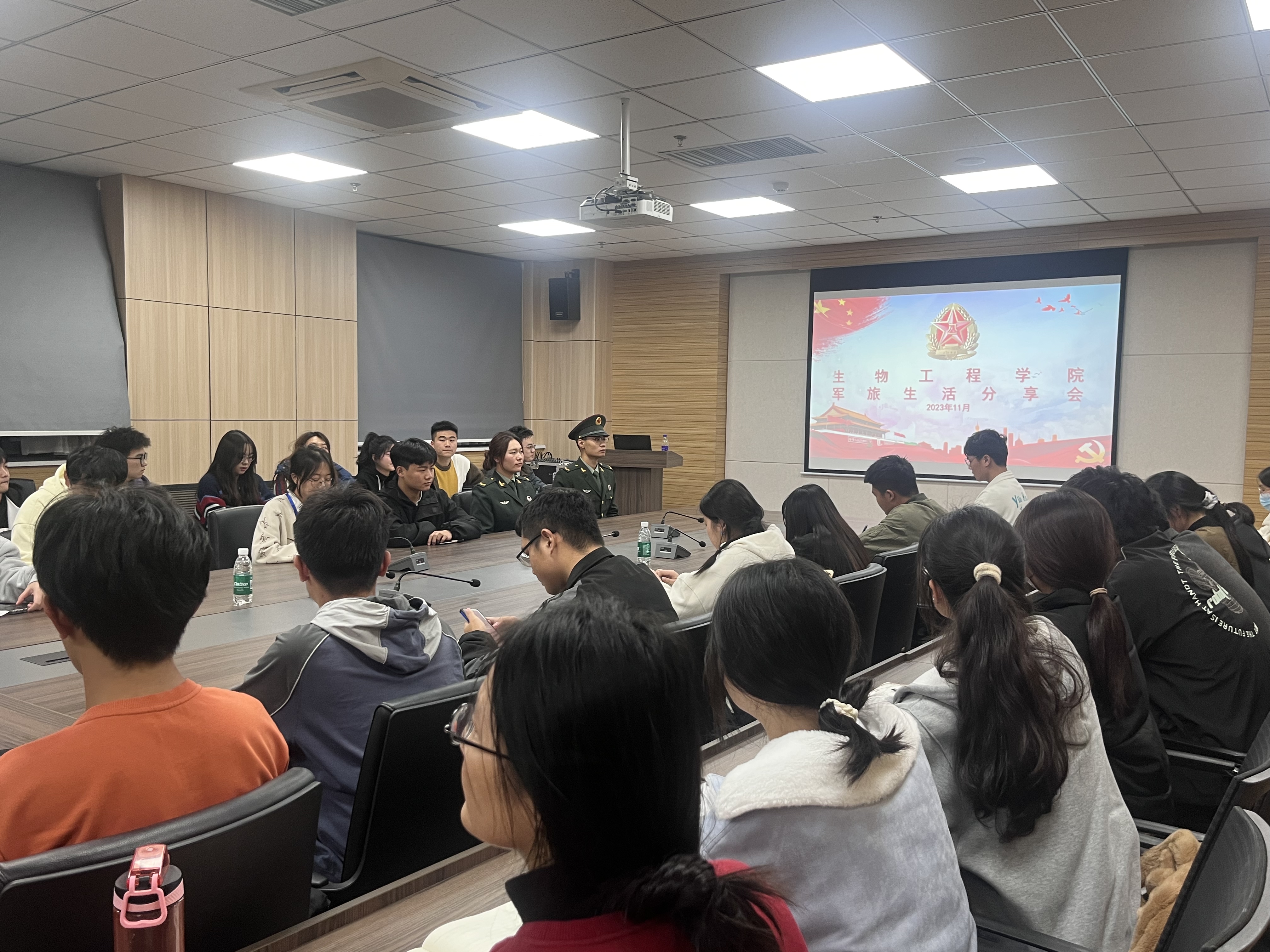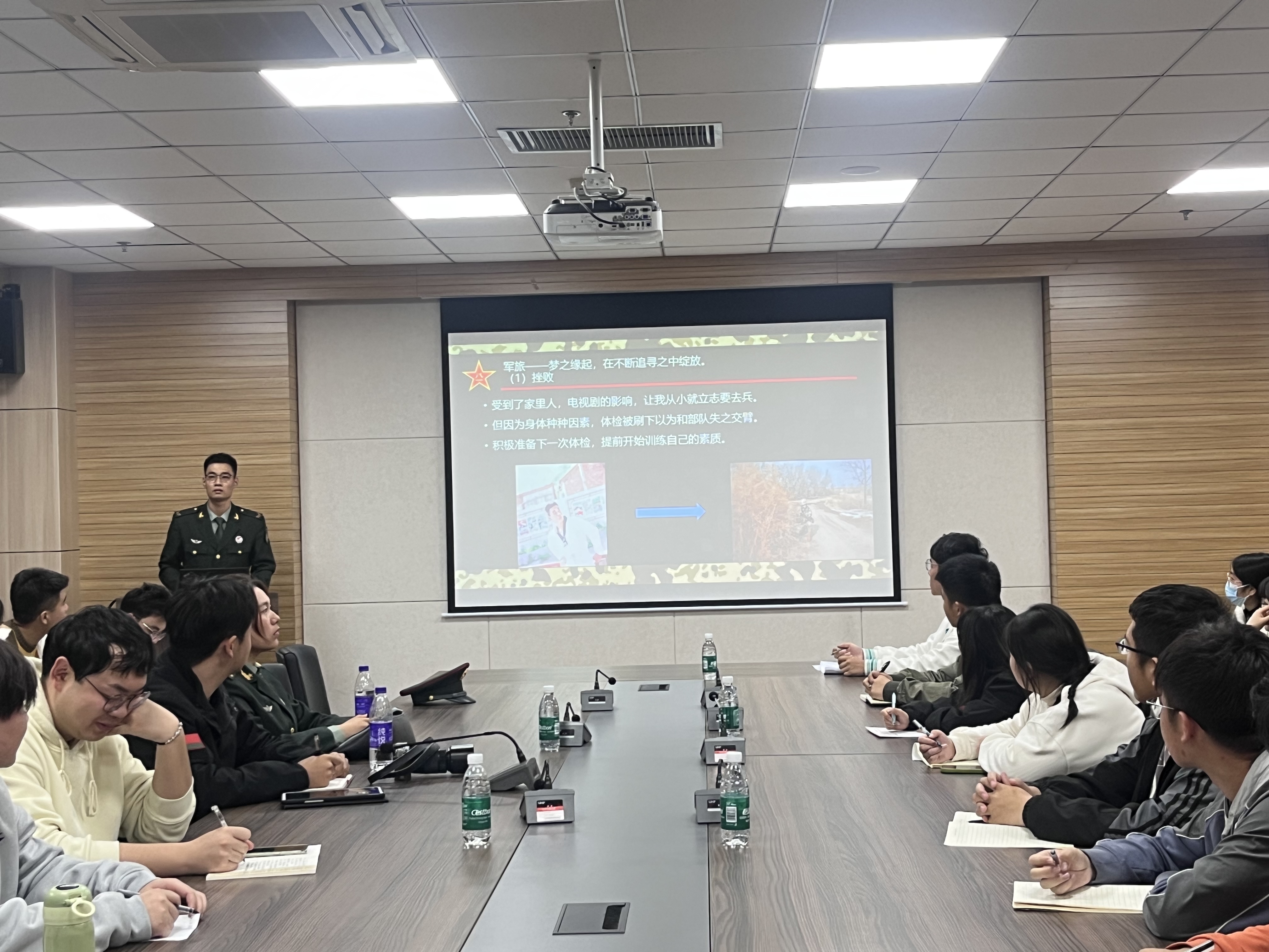 在基础实验实训大楼1313会议室开展征兵政策宣讲暨大学生军旅生活分享会。学院学工办主任岳媛媛,各年级学生干部及学生代表参加了会议。