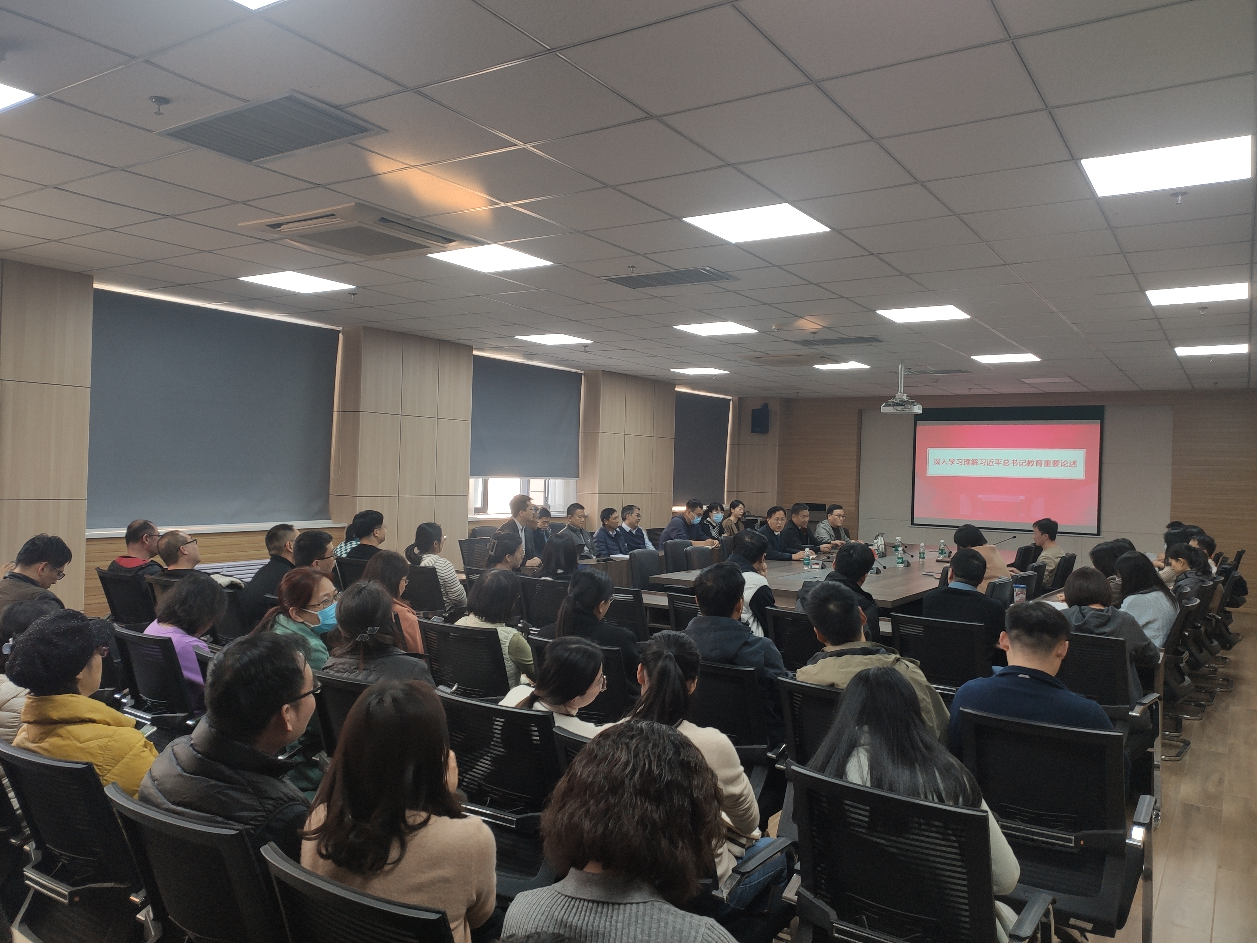 在惟徳楼1313会议室举行教职工理论学习会,会议邀请马克思主义学院副院长丁建波作了主题为《深入学习理解习近平总书记关于教育的重要论述》的专题报告。学院领导班子及全体教师参加了会议。会议由学院党委书记卫红伟主持。