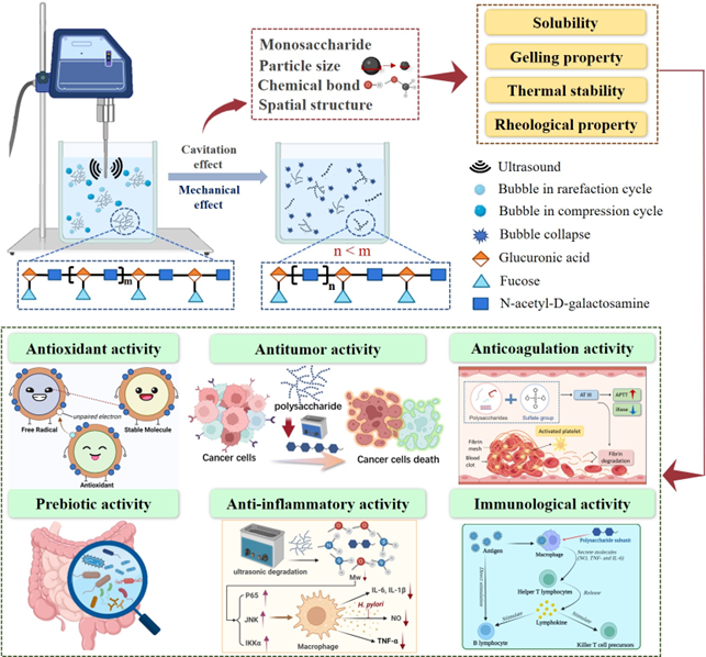 多糖作为一种安全绿色的高分子聚合物,在食品、医药及工农业生产等领域具有广泛应用。但是多糖活性及应用受单糖种类及比例、分子量、颗粒度、糖苷键类型、糖链分支度、空间构象等结构特征影响。因此,采用合适的方法对多糖进行改性或结构改造可有效提高其生物活性及应用。该文从超声降解对植物及微生物多糖结构、理化特性及生物活性的影响进行综述,有望为植物及微生物多糖的改性和构效关系研究提供一定帮助。