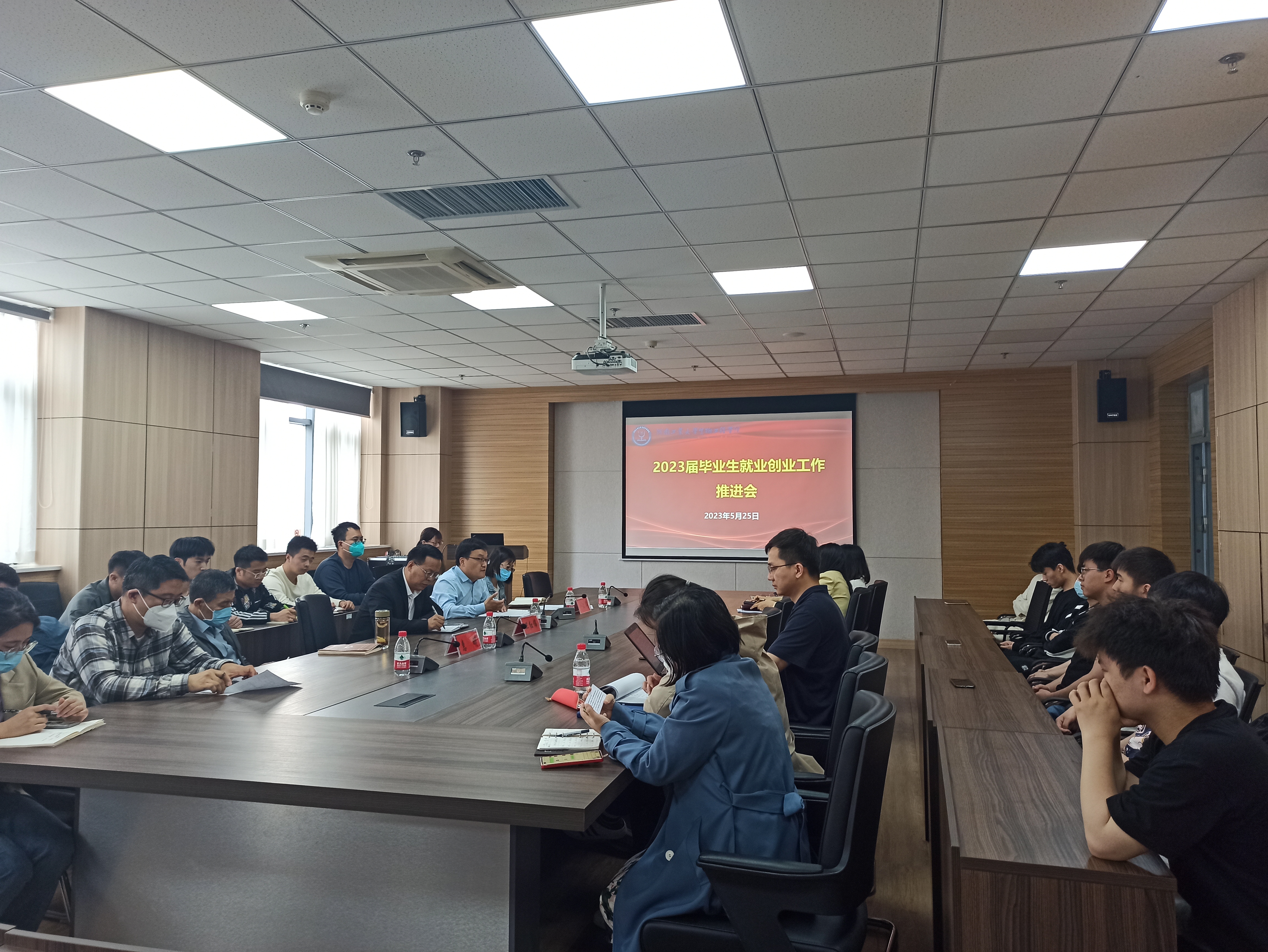 在1313会议室召开2023届毕业生就业创业工作推进会。学院党委书记卫红伟、副院长惠明、各系支部书记、系主任、全体辅导员、班主任以及毕业生班长参加了本次会议。会议由党委副书记余汉华主持。