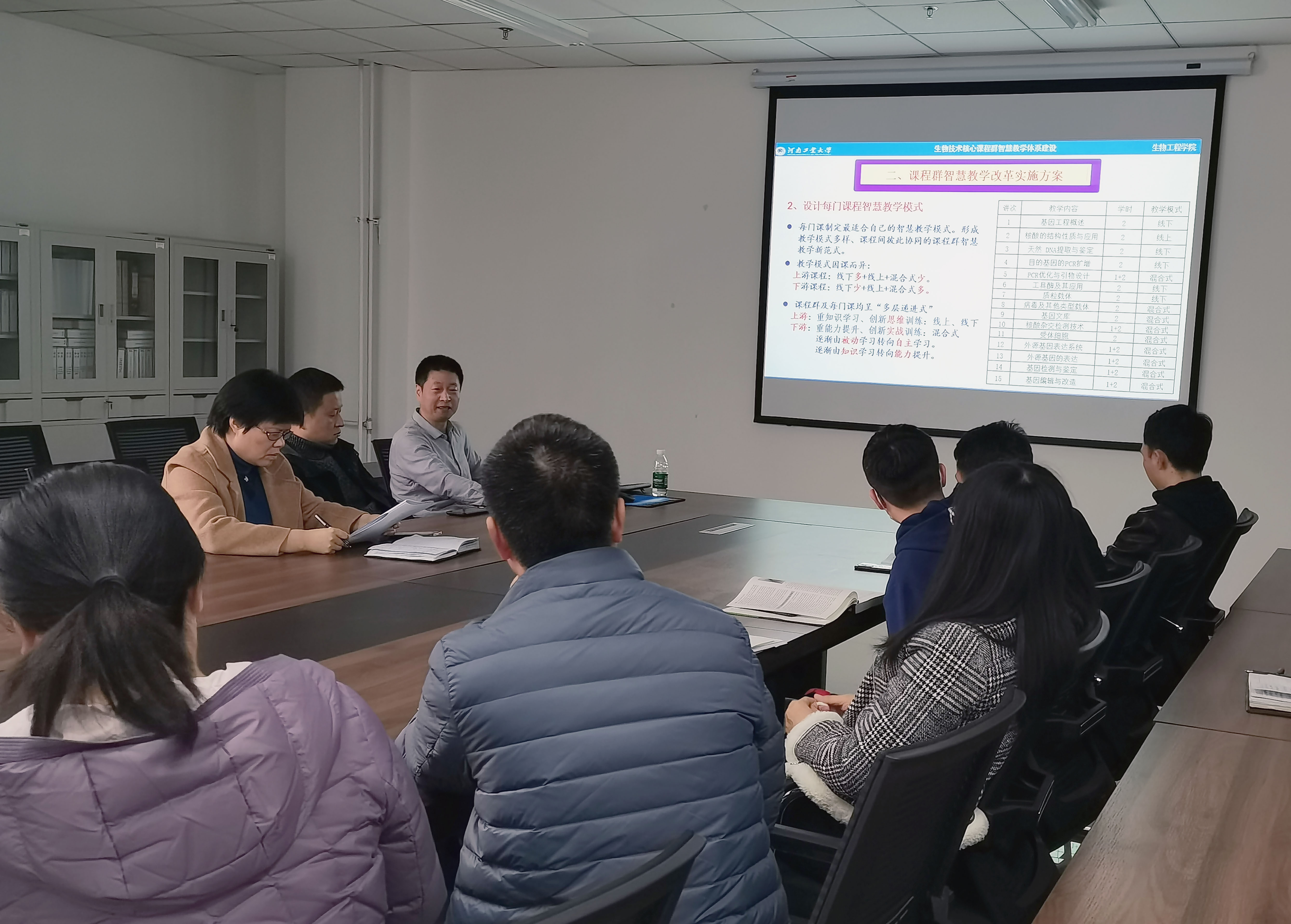 吴兴泉教授围绕生物技术专业核心课程群建设,对生物技术专业上、中、下游核心课程智慧化教学改革的教学模式设计、教学方法选择、评价反馈机制等进行了报告交流,并分享了学生创新思维和综合素质高阶能力培养的心得体会。参会教师对课程群智慧化教学改革的实施步骤、实施进度进行了研讨,对课堂教学过程中学生创新意识培养进行了交流,形成了统一意见,确定了方向、明确了任务。