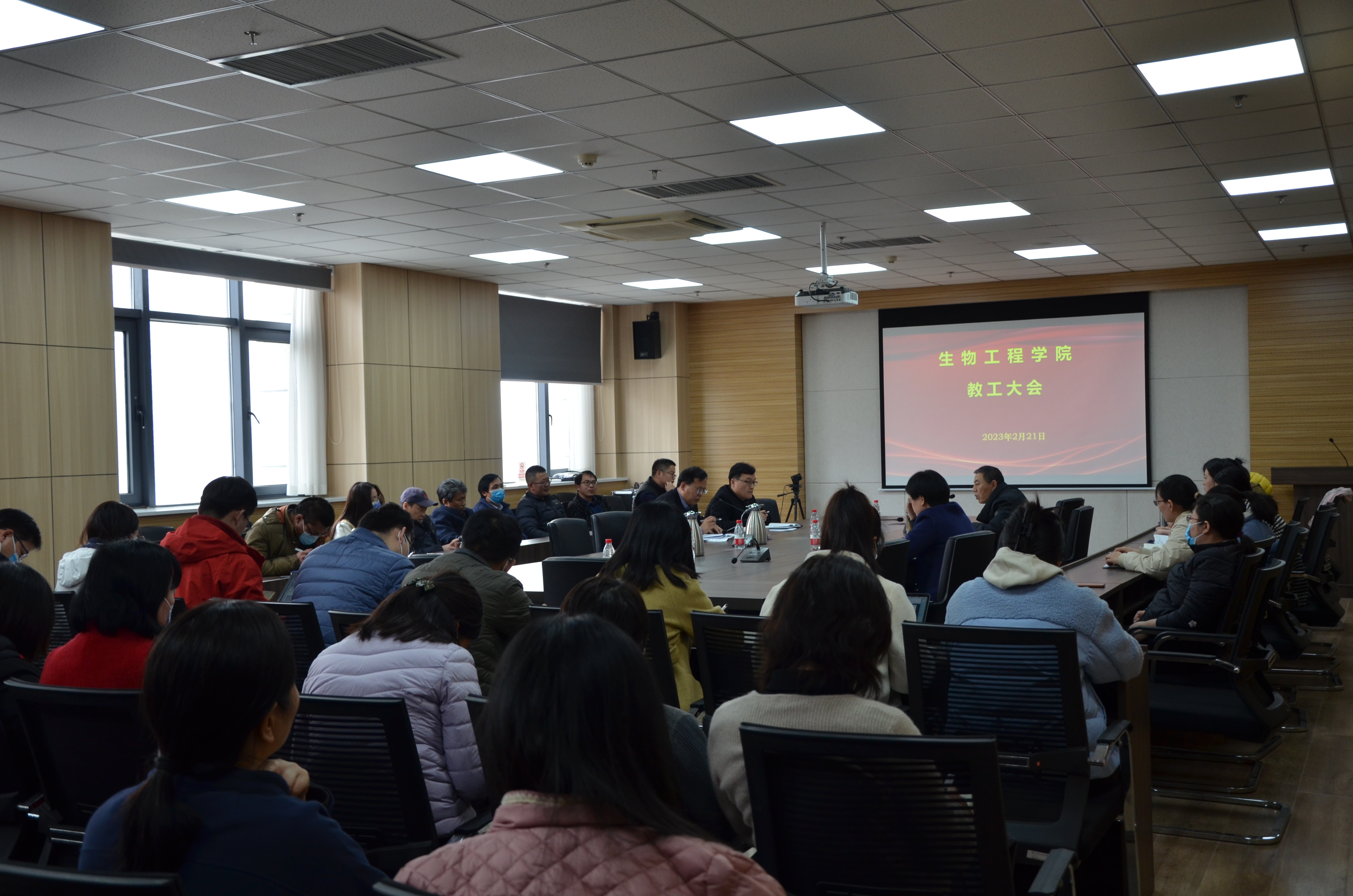 在基础实验实训中心楼1313会议室召开全体教工大会,部署新学期各项工作。学院领导班子成员以及全体教工参加了会议。会议由院党委书记卫红伟主持。