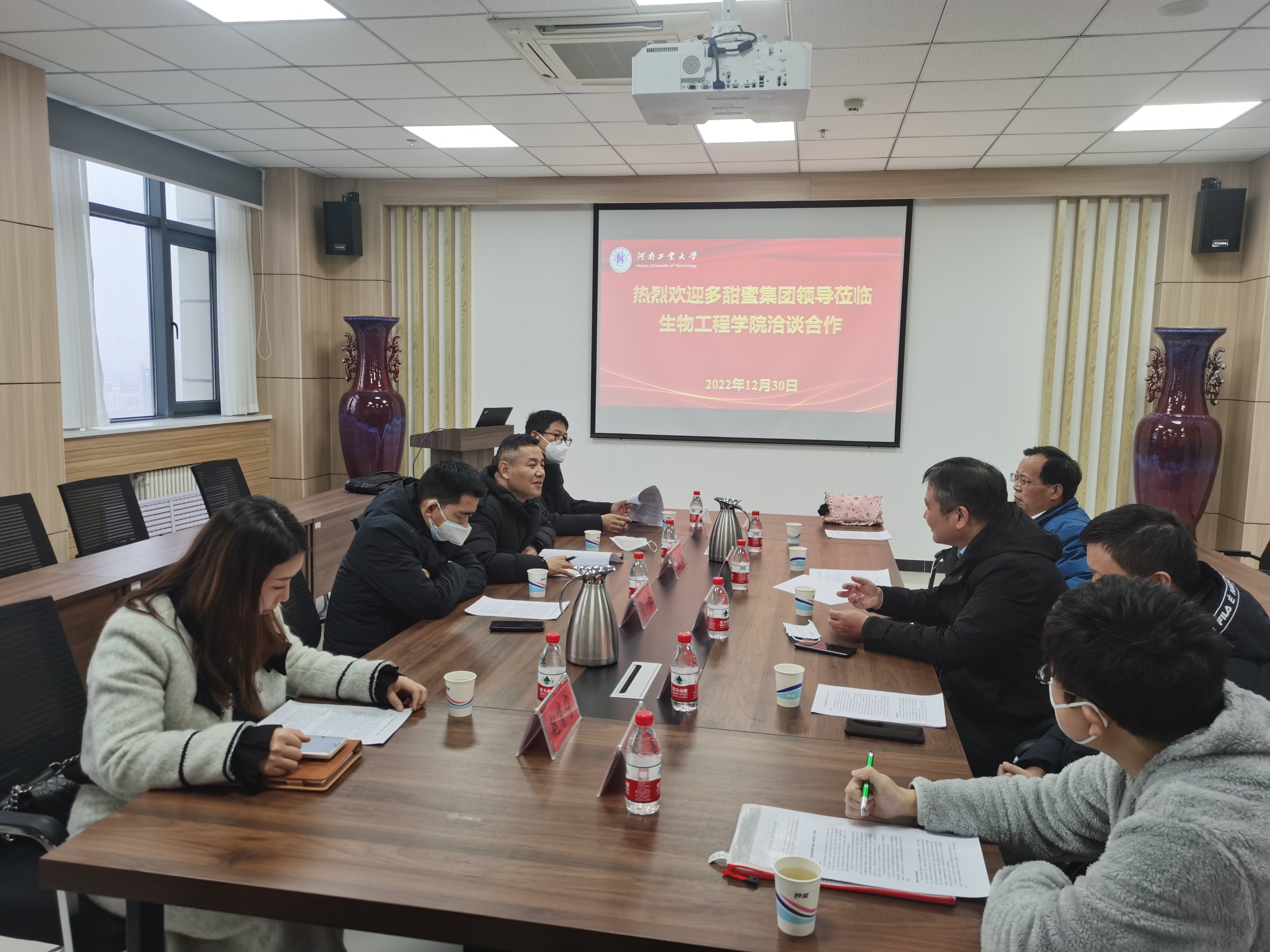 2022年12月30日,河南多甜蜜集团董事长孟少伟、总裁刘钟杰、总裁助理李晓勇、财务主任赵肖宁一行赴麻豆tv
