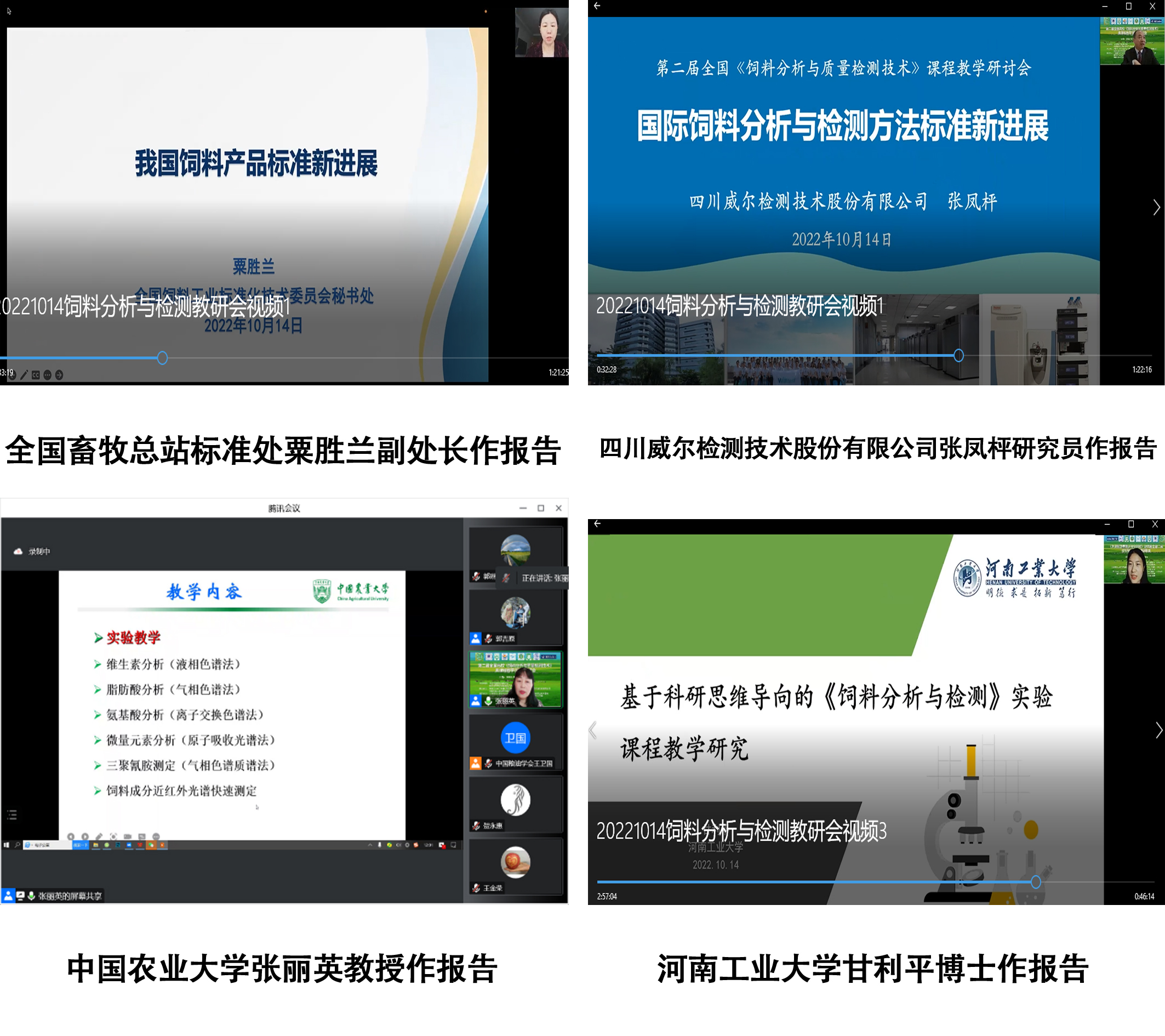 本次研讨会是在2020年成功举办第一届会议的基础上召开,参会学校和人数较上届有大幅增加。会议以“创新饲料质量检测教学,培养新农科人才”为主题,进行了本科生、研究生的课程教学研究成果的深入交流与教学理念、目标、内容、方法改革的探讨。会议第一阶段安排了行业专家特邀报告,由中国粮油学会饲料分会副会长、中国农业大学张丽英教授主持。全国畜牧总站标准处粟胜兰副处长、四川威尔检测技术有限公司副总经理张凤枰研究员、禾丰食品股份有限公司品控中心总经理吴振洲博士和青岛蔚蓝生物有限公司首席科学家郭吉原分别作了《我国饲料产品标准新进展》、《国际饲料分析与检测方法标准新进展》、《新时代饲料集团企业质量控制体系岗位对本科生、研究生的培养要求》和《检测新方法带来饲料技术的新变化》的大会报告。这些特邀报告使与会的大学教师、企业参会人员开拓了视野,进一步了解了行业对饲料相关专业人才的饲料分析检测评价能力与素质的培养要求,深感受益。