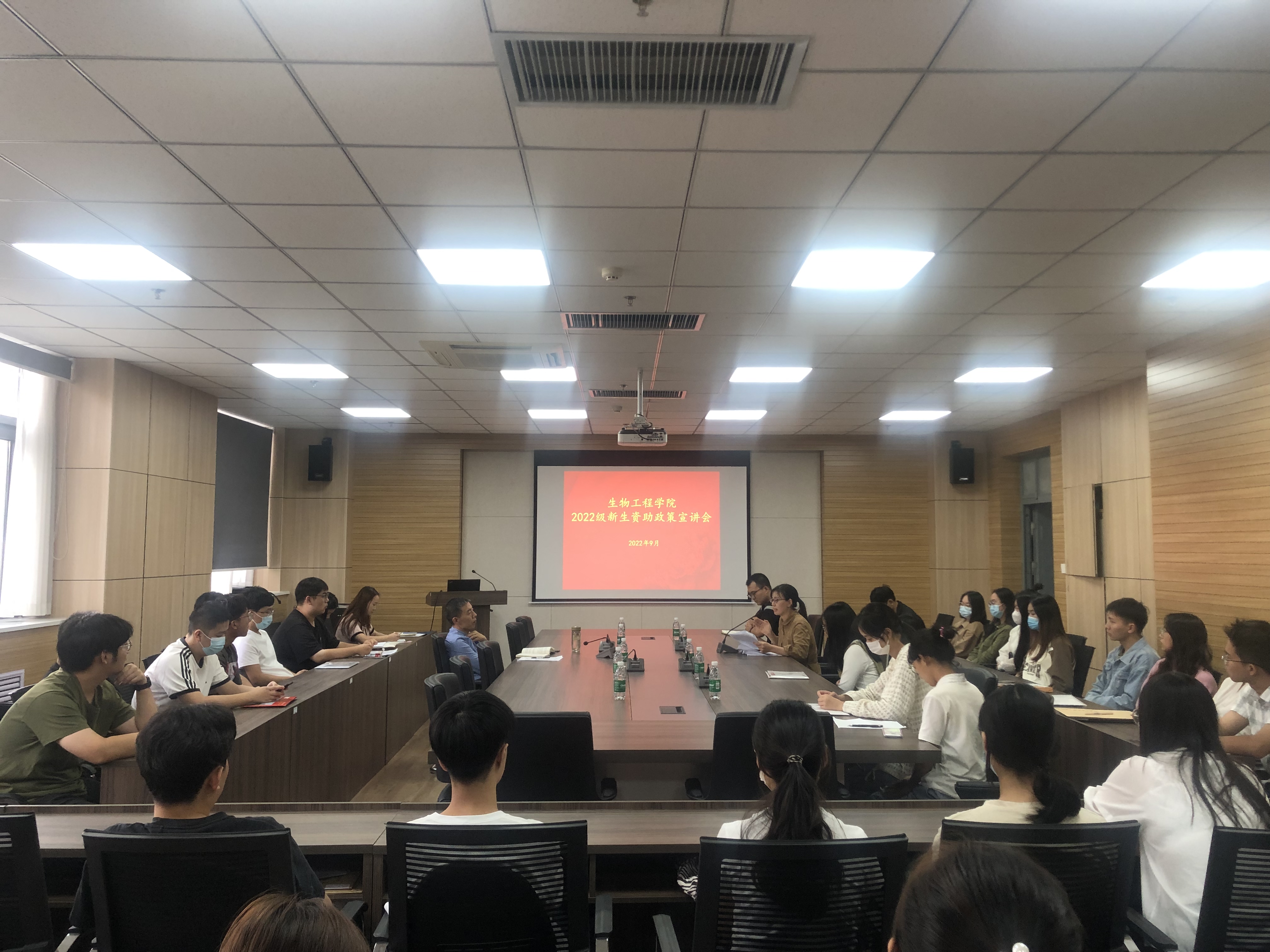 在1313会议室召开2022级研究生新生资助政策宣讲活动,学院副院长惠明、学工办主任岳媛媛、研究生负责人张鑫荟、资助负责人李亚楠以及2022级全体研究生新生参加了本次宣讲活动。