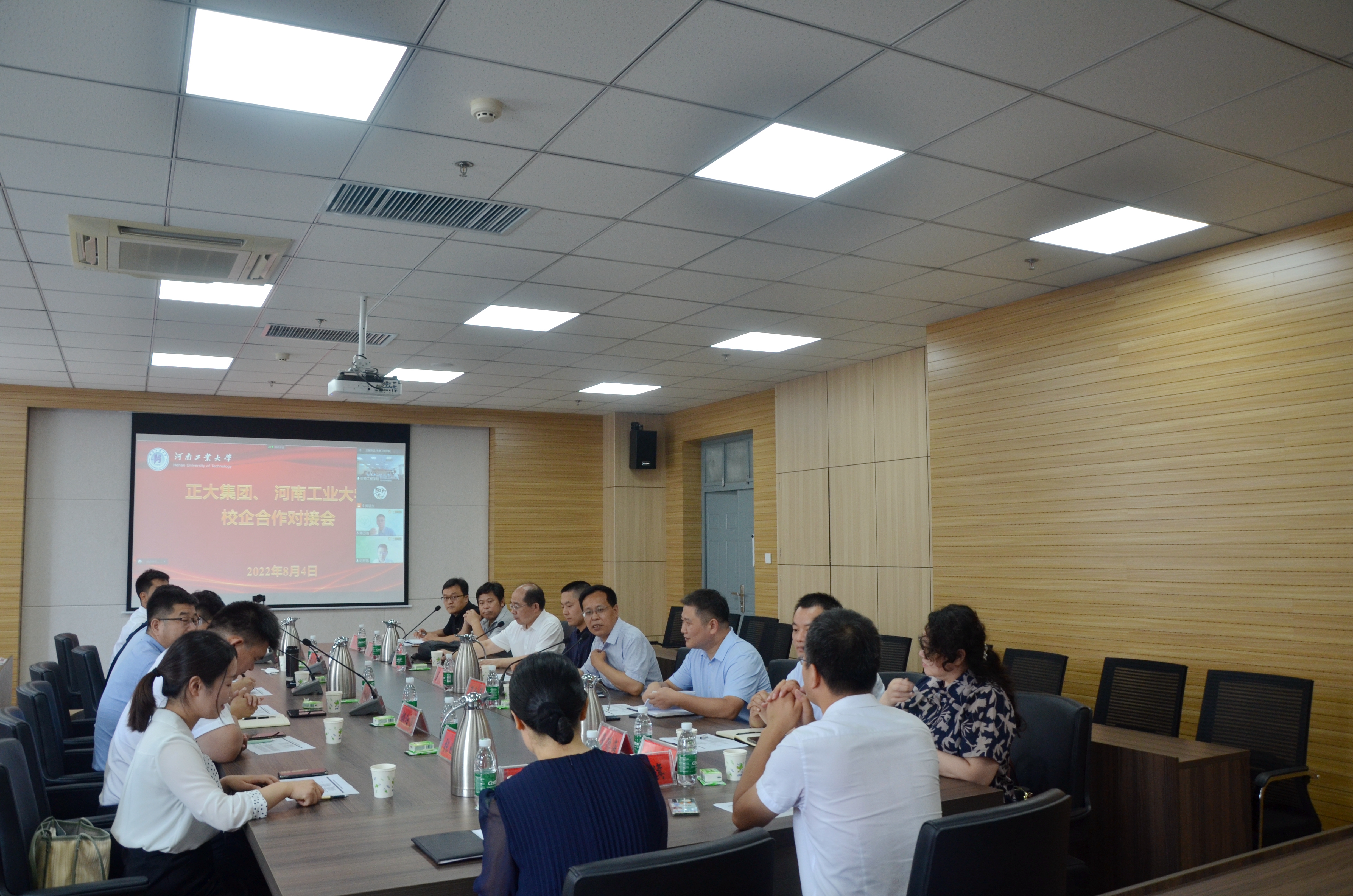 1313会议室举行。正大集团河南区零售事业部资深副总裁武磊、河南区原料采购资深副总裁翟新立、郑州战区基采贸易助理副总裁吕晓博、河南区食品事业研发总监郝洪涛、河南区零售事业人力总监郑运东、郑州战区区域销售经理张晓静(学校2016届校友),我校就业创业中心主任梁朗、粮油食品学院院长赵仁勇、麻豆tv