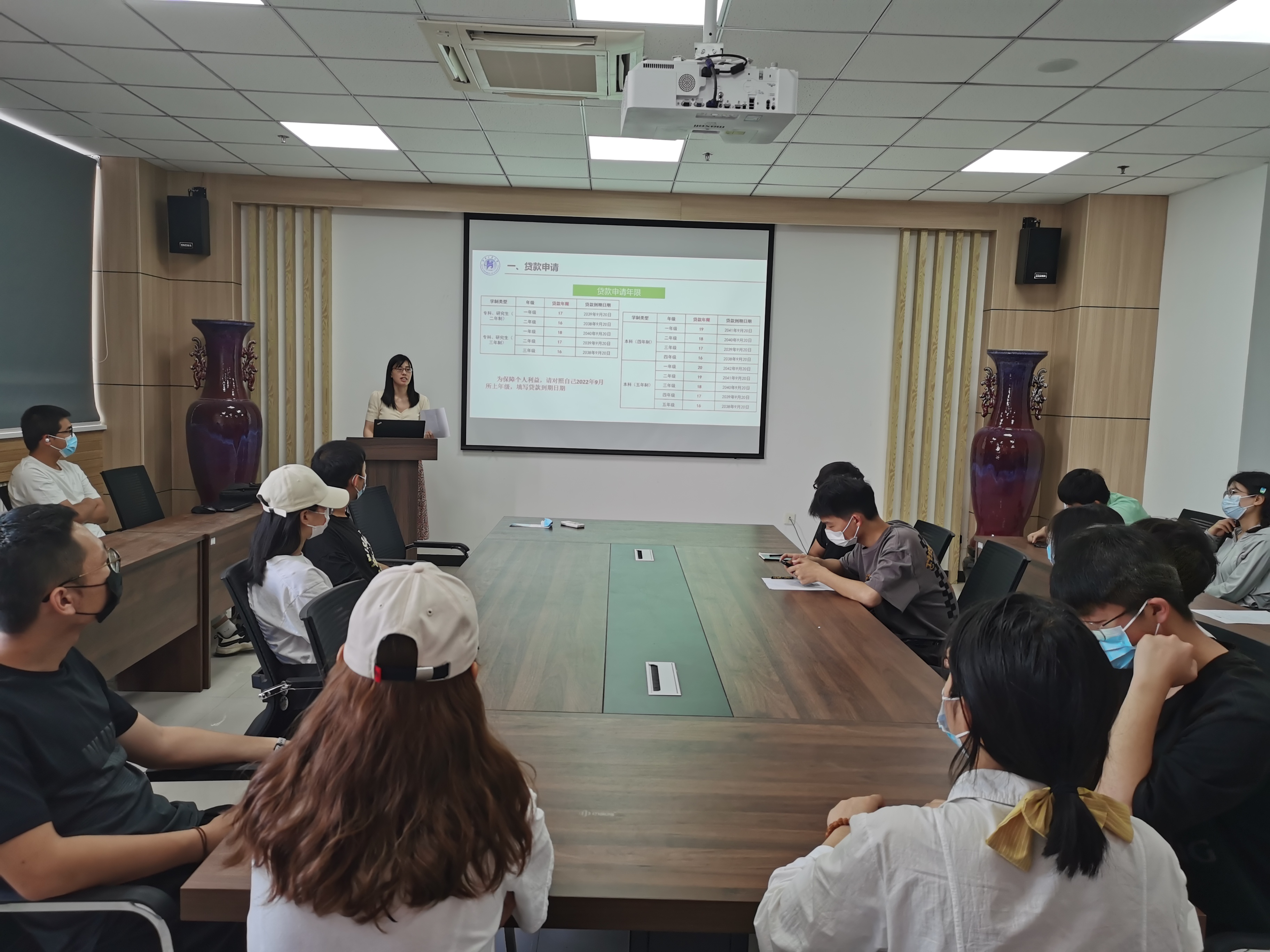 在1318会议室召开2022年高校国家助学贷款宣讲会,学院资助负责老师李亚楠、资助助理及各年级学生代表参加了此次会议。