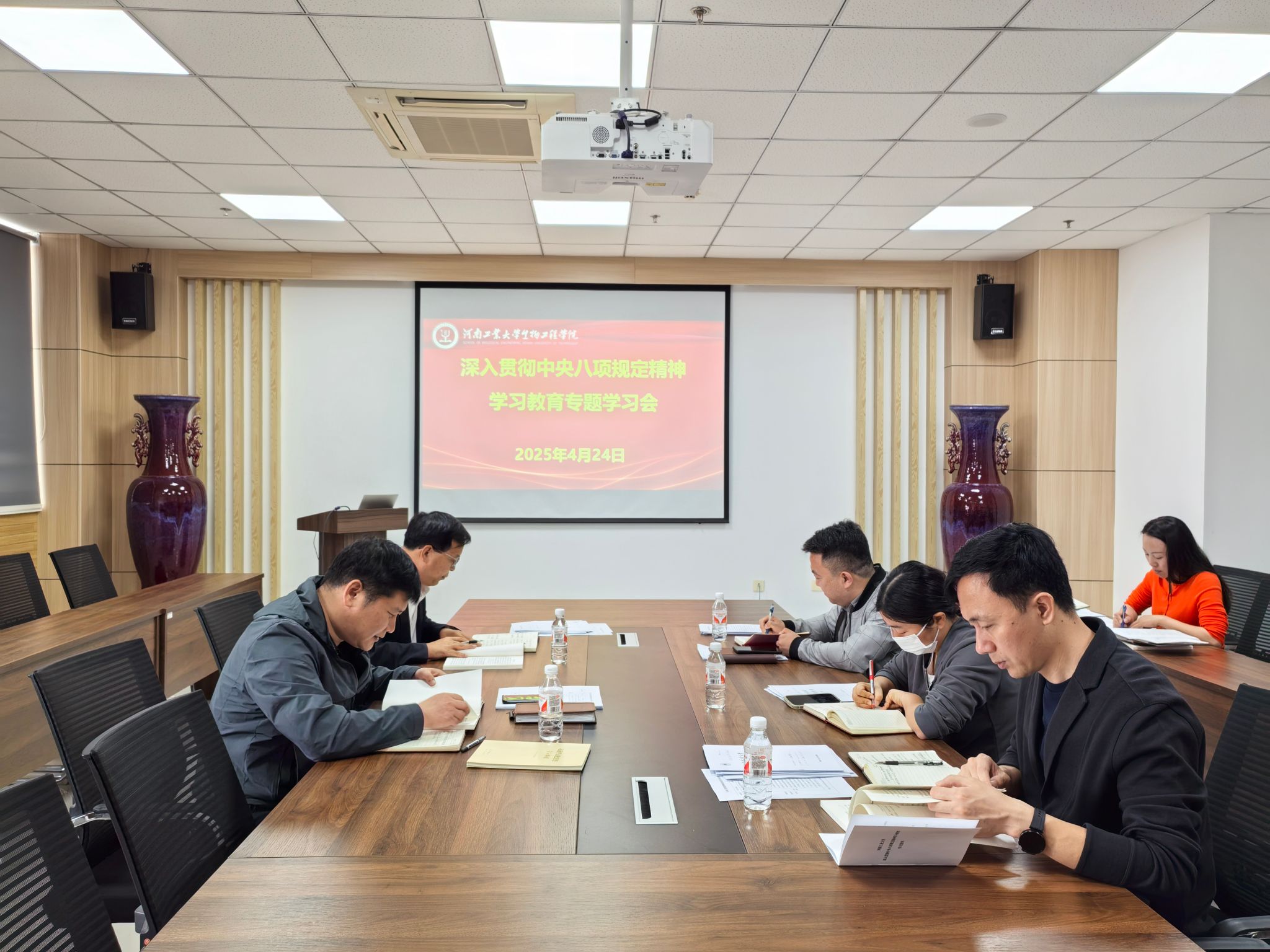 党委理论学习中心组在惟德楼1318会议室召开深入贯彻中央八项规定精神学习教育专题学习会,学院党委委员参加会议。会议由学院党委书记卫红伟主持。