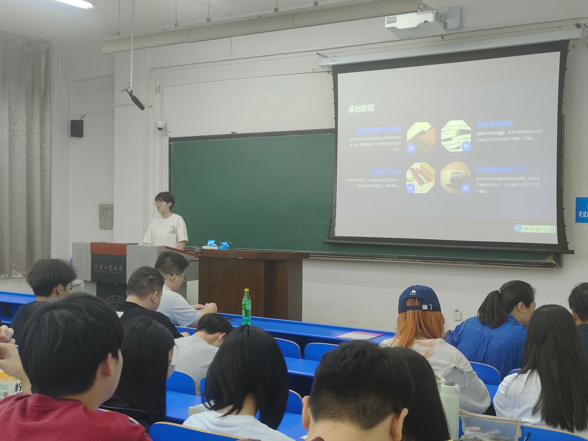 随后,刘宸昊、王晶、黎勤燕三位同学依次上台,围绕考研过程中的考前准备、专业课复习安排、备考心态调整、复试面试技巧等关键环节,毫无保留地分享了宝贵经验。会议现场气氛热烈。学生们纷纷表示学长学姐的“避坑指南”,让他们对备考有了更清晰的认知,收获颇丰。