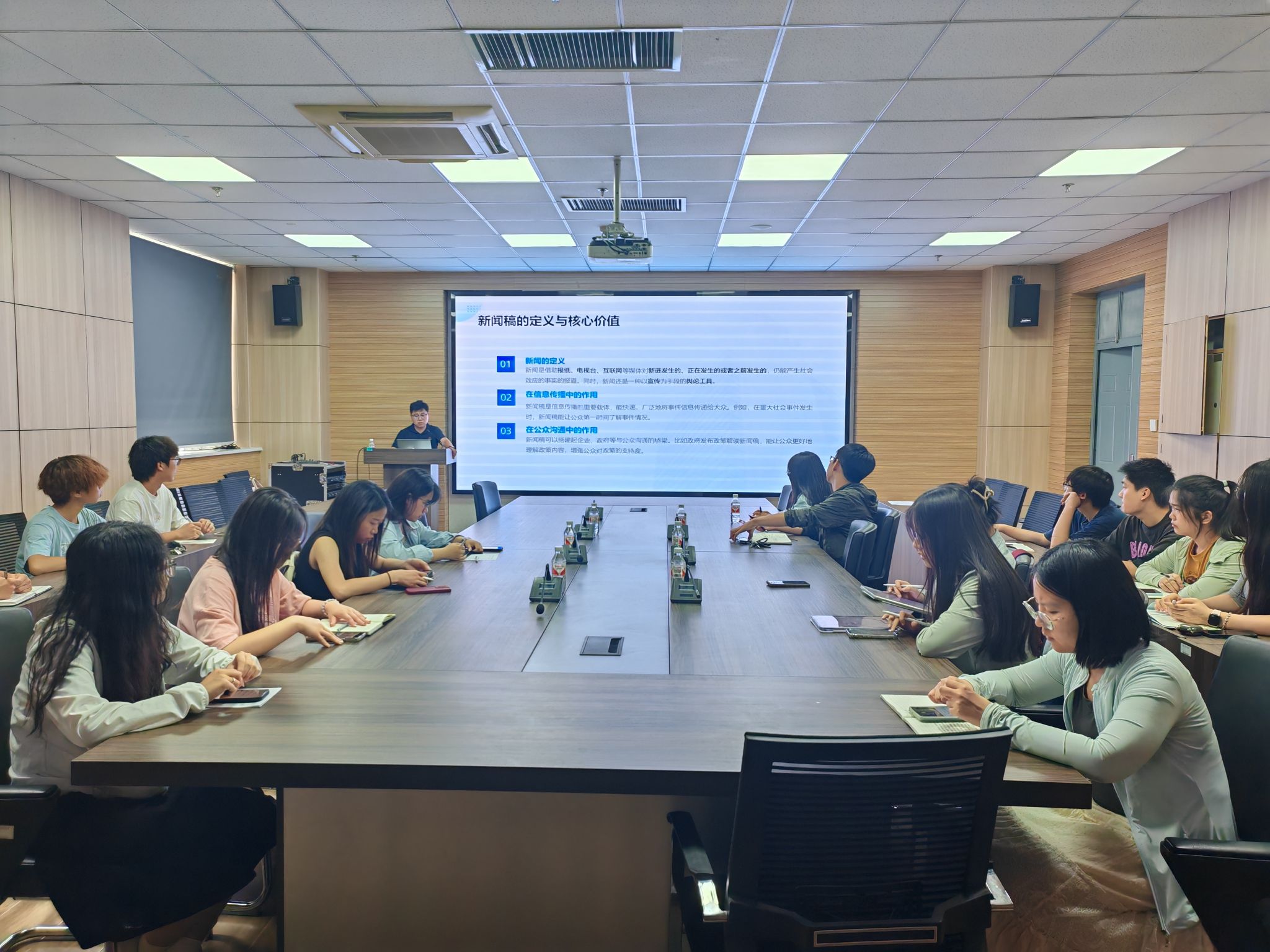 会上,2022级辅导员、青年宣讲名师工作室主持人孟建峰以“如何撰写一篇高质量的新闻稿”为题,为全体学员讲授培训班第一讲。他从新闻稿基础知识、核心结构、写作方法、常见问题以及案例分析等五个方面,详细介绍了新闻稿撰写的技巧。他指出,文字写作能力是学生干部应具备的一项基本功。练就扎实的“笔力”,既是做好本职工作的需要,也是个人成长成才的硬本领之一。写好新闻稿需要多看、多思、多练、多修改,只有通过不断地学习和实践,才能掌握新闻稿写作的技巧和方法,提升新闻稿的质量和自身文字写作能力。