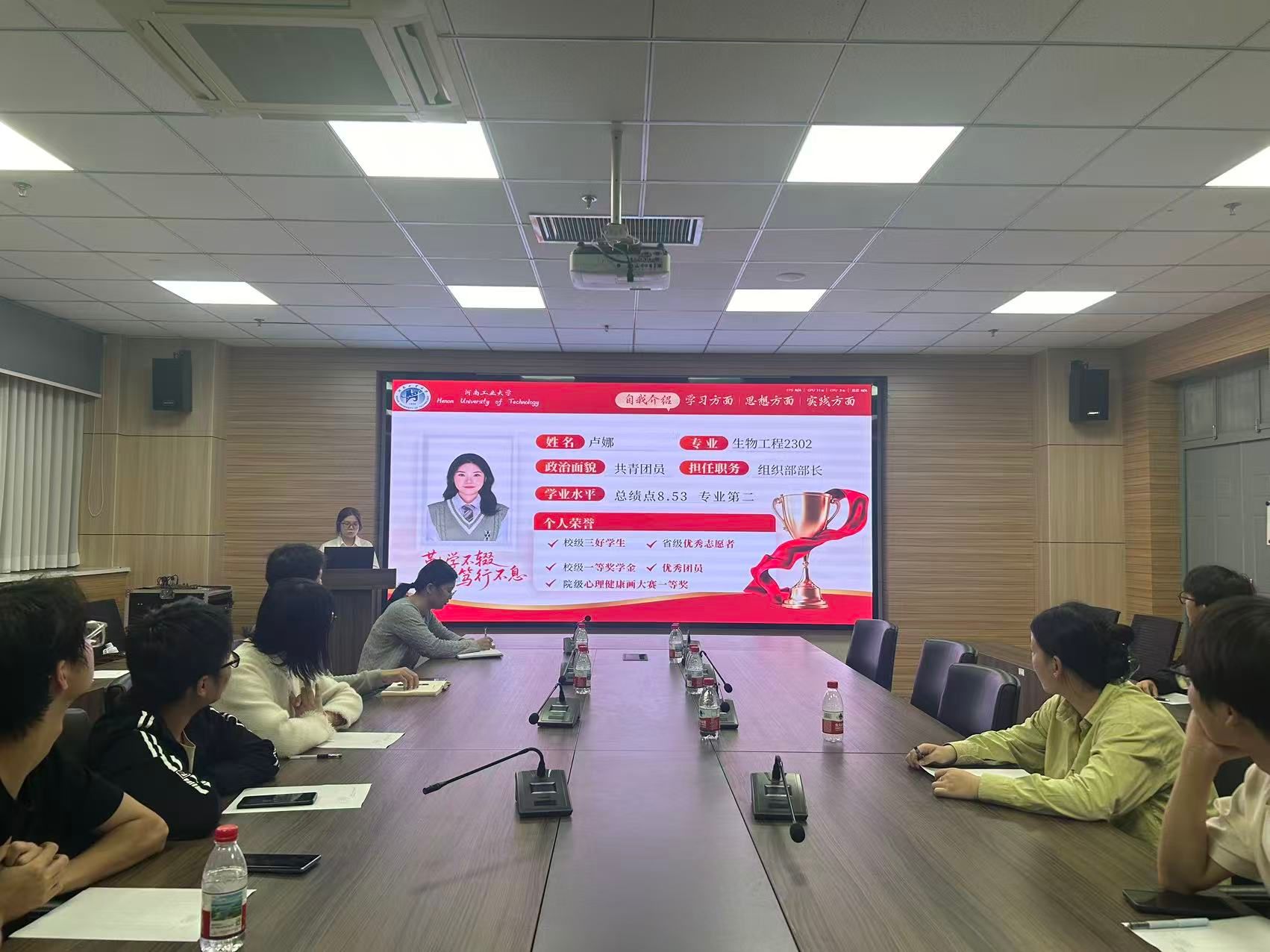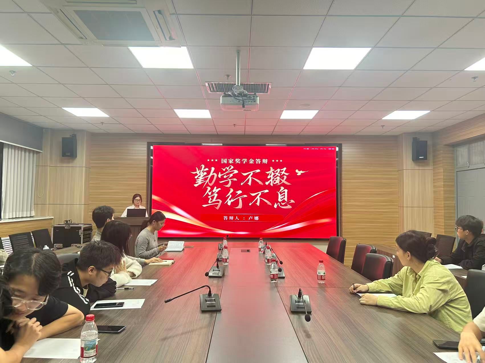 在惟德楼1313会议室分年级举办了2025年国家奖学金答辩会。学院党委副书记蔡永平、学工办主任岳媛媛、各年级辅导员、学生代表及候选人参加了本次答辩会。