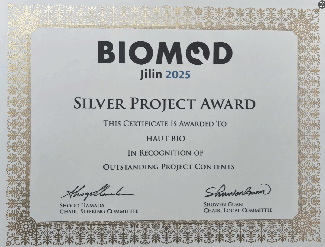 代表队HAUT-BIO以生物大分子为“构建单元”,设计并组装具有新颖功能的纳米器件与分子系统,最终凭借出色表现获得项目银奖。
