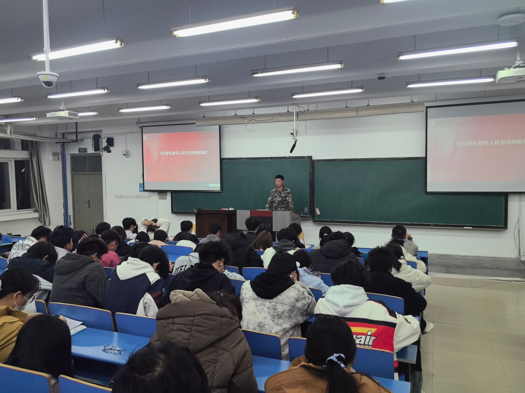 在4号楼4322教室举办了大学生征兵宣讲会。麻豆tv