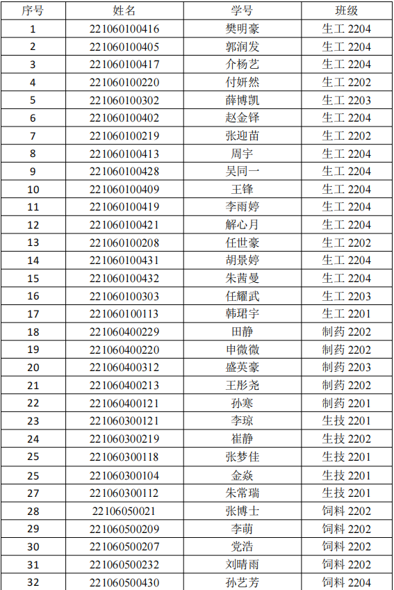 注:名单顺序为按班级排序。