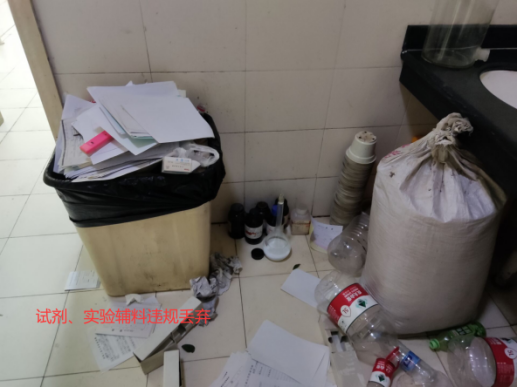 2021年10月21日下午,学院实验中心周燕霞和苏明慧老师对9号楼科研实验室及搬迁现场进行巡查,大部分实验室都在归置、整理各实验室的仪器设备和试剂实验用品等,虽然实验室及楼道现场有些杂乱,但搬迁工作整体在高效、有序进行。在巡查过程中发现也存在一些问题:1.实验室门开着却无人值守,存在防盗和安全隐患。2.虽然一再强调,但仍有部分实验室学生将试剂直接丢弃在卫生间垃圾桶旁。