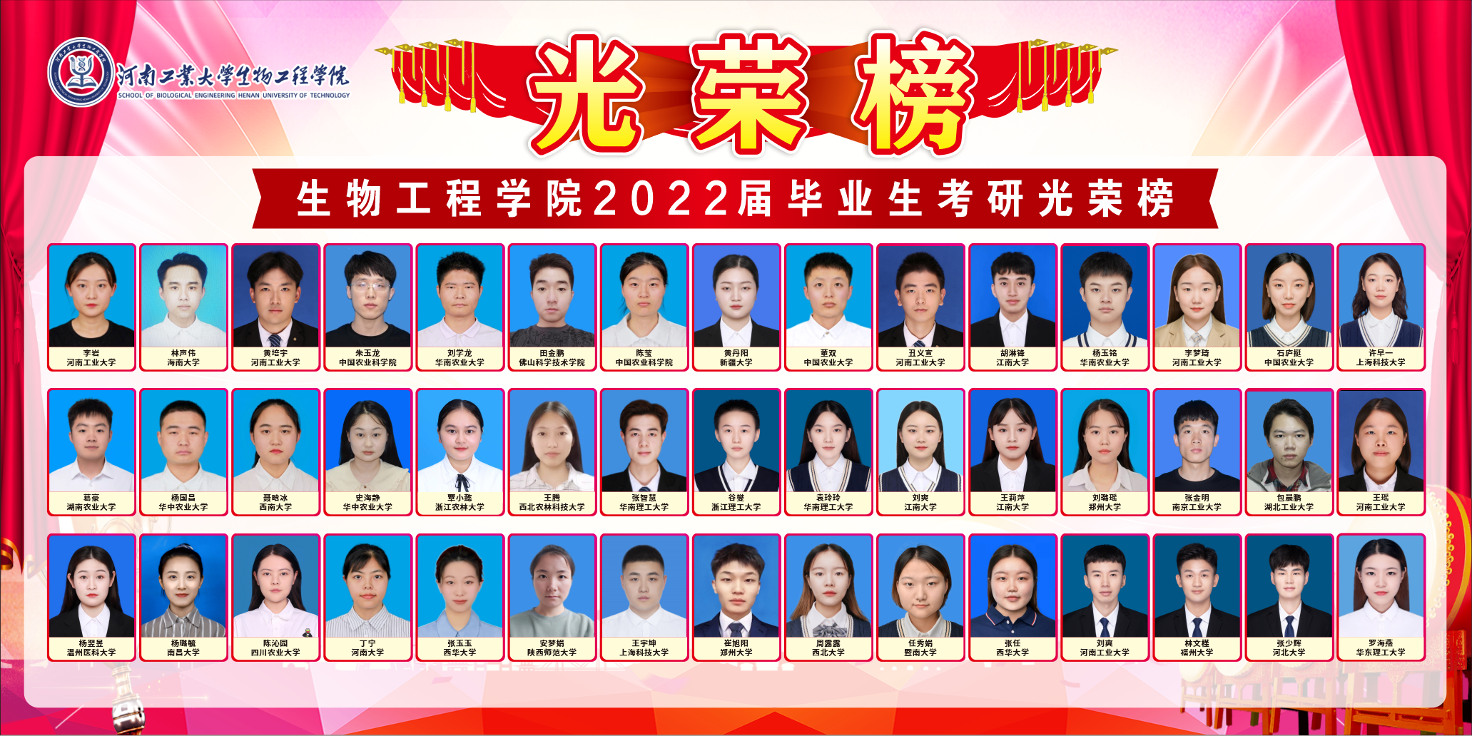 学院建有“生物学”、“畜牧学”、“合成生物学”3个河南省第十批重点学科,有“生物学”一级学科硕士点,“动物营养与饲料科学”二级学科硕士点及“食品加工与安全”、“生物技术与工程”2个专业硕士学位点,在校硕士生240余人。学院建有“粮食资源转化与利用河南省重点实验室”“工业微生物菌种选育与保藏河南省工程研究中心”“农产品产后微生物检测与防控河南省高校重点实验室”“河南省高校生物饲料工程技术研究中心”等一批高水平学科基地及创新平台,教学科研实验室面积11000余平米,仪器设备总值6400余万元。