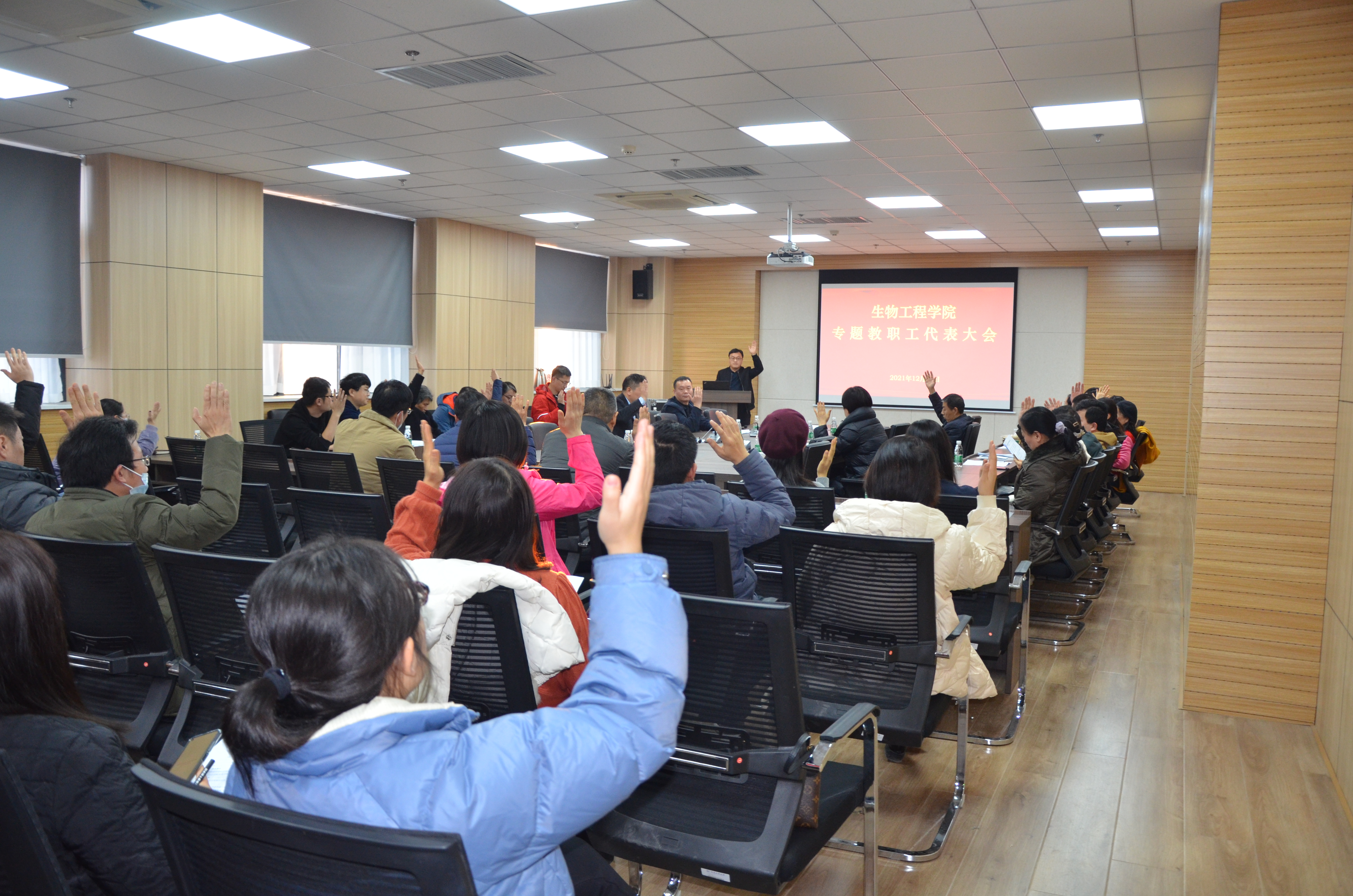 专业技术职务任职资格评审推荐办法(草案)》进行举手表决,获得全票通过。