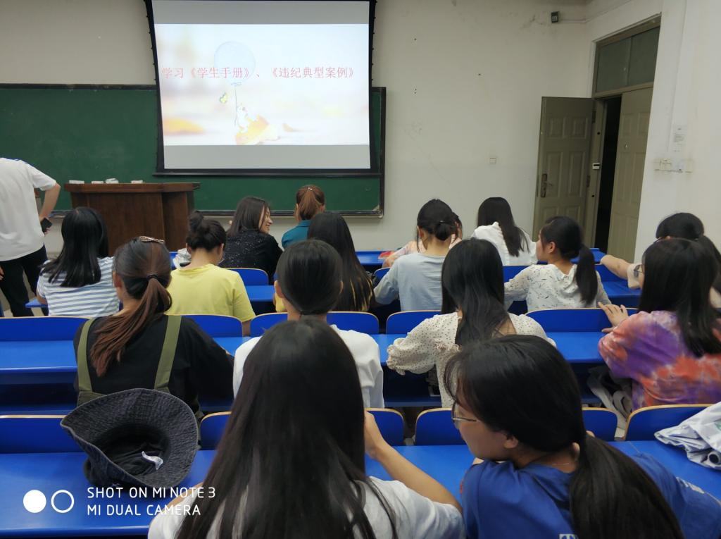 学生手册》内容,学习关于学生规范条例,考试违纪惩罚条例以及其他关乎每位同学切身利益的内容。其后,由周珊珊老师,陈凌子老师和丁凯强老师,带领着大家学习《麻豆tv